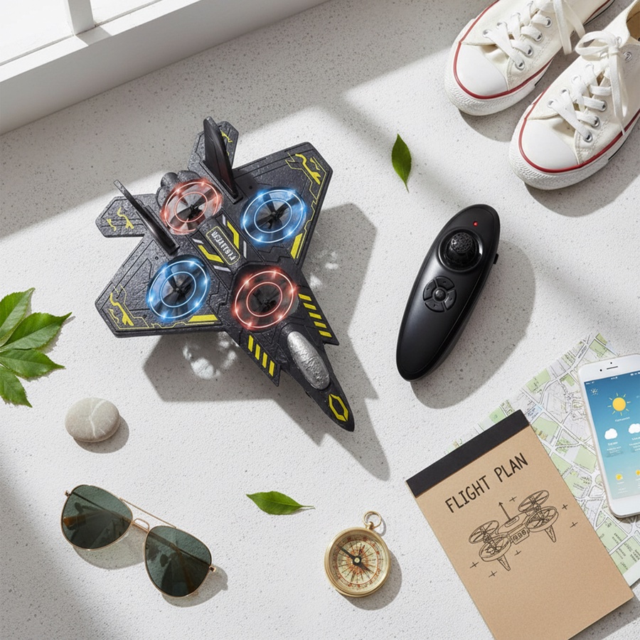 طيارة ريموت RC بتوازن ذكي وجيروسكوب 6 محاور، مدى 80 متر، إضاءة LED، خفيفة ومقاومة للصدمات، مناسبة للمبتدئين للاستخدام الداخلي والخارجي.