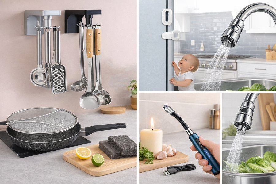 باكج متكامل يجمع لك أهم أدوات المطبخ اللي تحتاجها يوميًا، مصمم عشان يوفّر عليك وقتك، يحافظ على أمان بيتك، ويخلّي مطبخك أنظف وأكثر ترتيبًا.