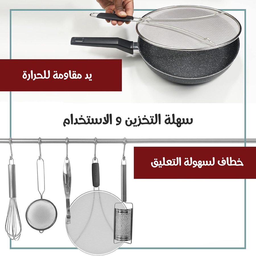 - يحميك من تطاير الزيت والحروق