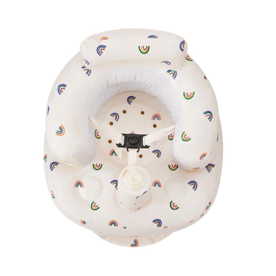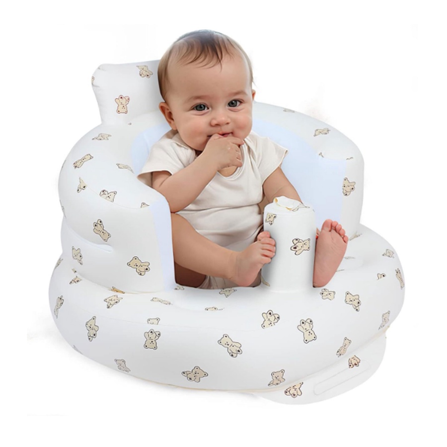 كرسي أطفال قابل للنفخ مع حزام أمان، ظهر داعم، خفيف وسهل النفخ، مناسب للجلوس واللعب والأكل حتى وزن 30 كجم، PVC آمن وسهل التنظيف.