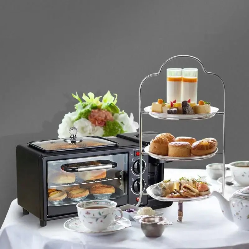 التحكم اليدوي سهل وبسيط لأي مستخدم، بينما يتمتع التوستر بسعة 15 لتر للتسخين والطبخ الخفيف. كما تعمل المقلاة بقوة 600 واط لضمان تسوية سريعة، وماكينة القهوة توفر 4 أكواب خلال دقائق.