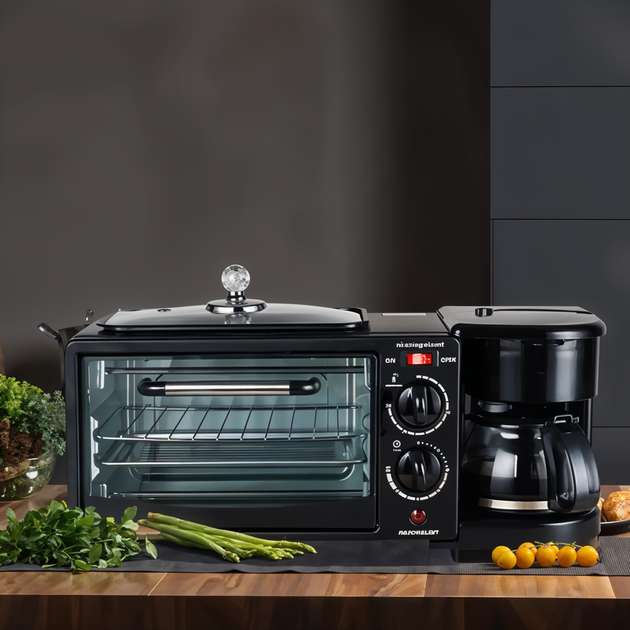 احصل على جهاز مطبخ متكامل يجمع بين ماكينة القهوة والمقلاة والفرن التوستر في جهاز واحد يوفر عليك الوقت والمساحة ويمنحك أداء عالي في كل استخدام.