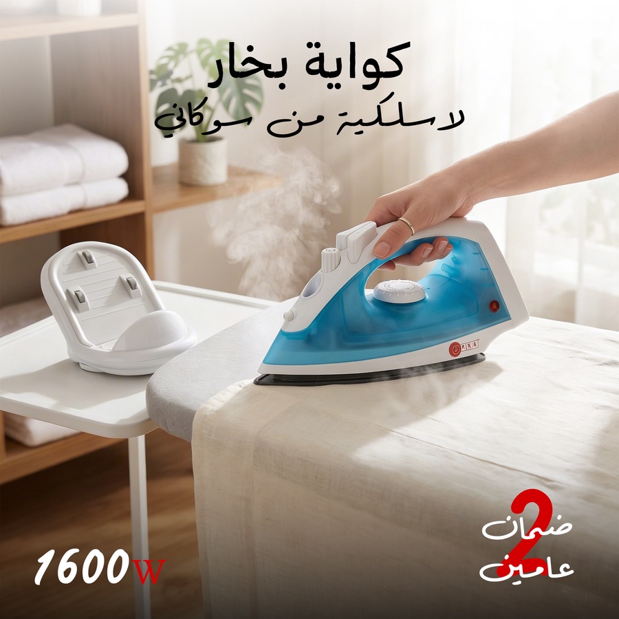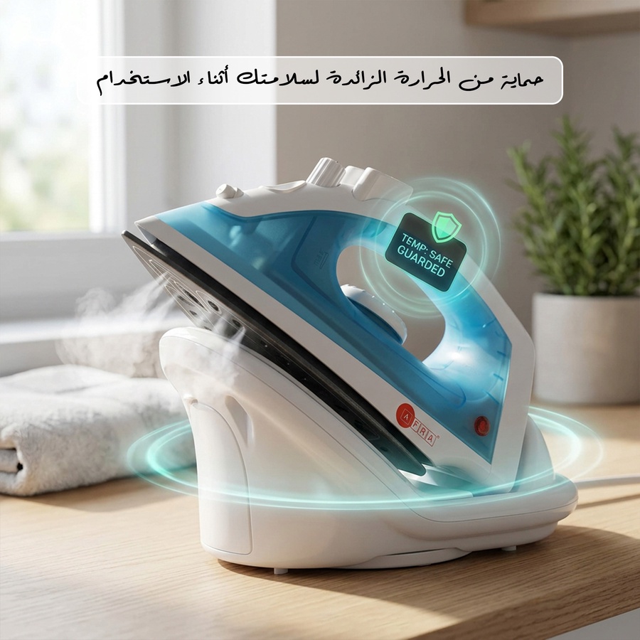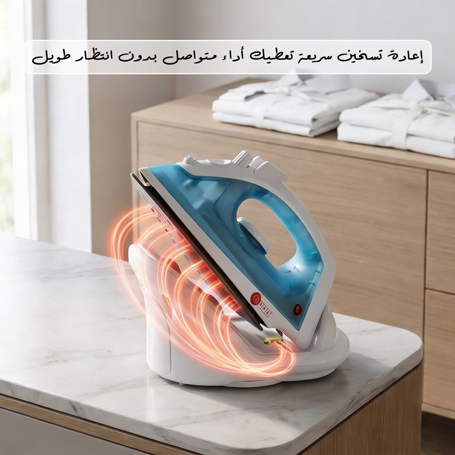 مكواة لاسلكية 1600 واط بسيراميك غير لاصق، بخار قوي، تحكم حراري متعدد، حماية من الحرارة الزائدة، سهلة الاستخدام والتسخين السريع.