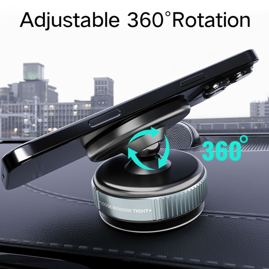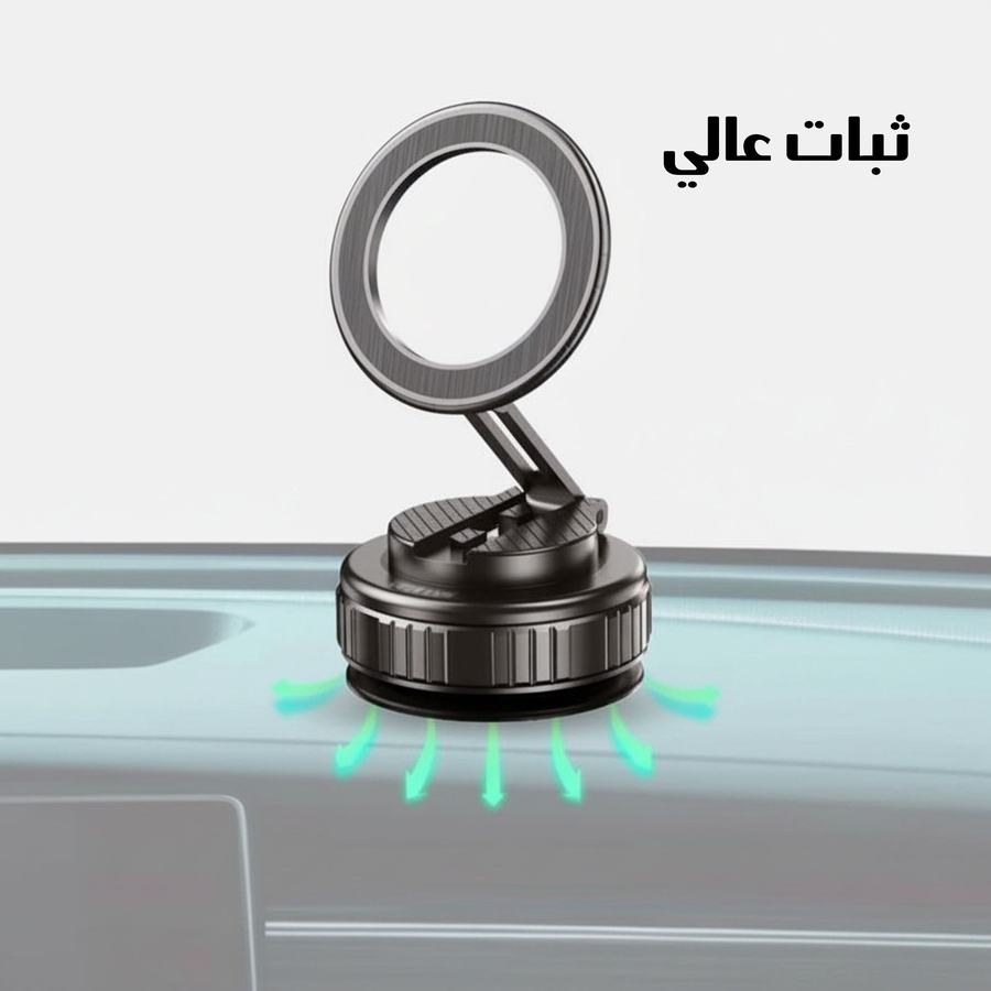 حامل جوال مغناطيسي بزاوية دوران 360° ومغناطيس قوي، مناسب للسيارة والمكتب، يدعم أجهزة MagSafe ويثبت الهاتف بثبات حتى على الطرق الوعرة.